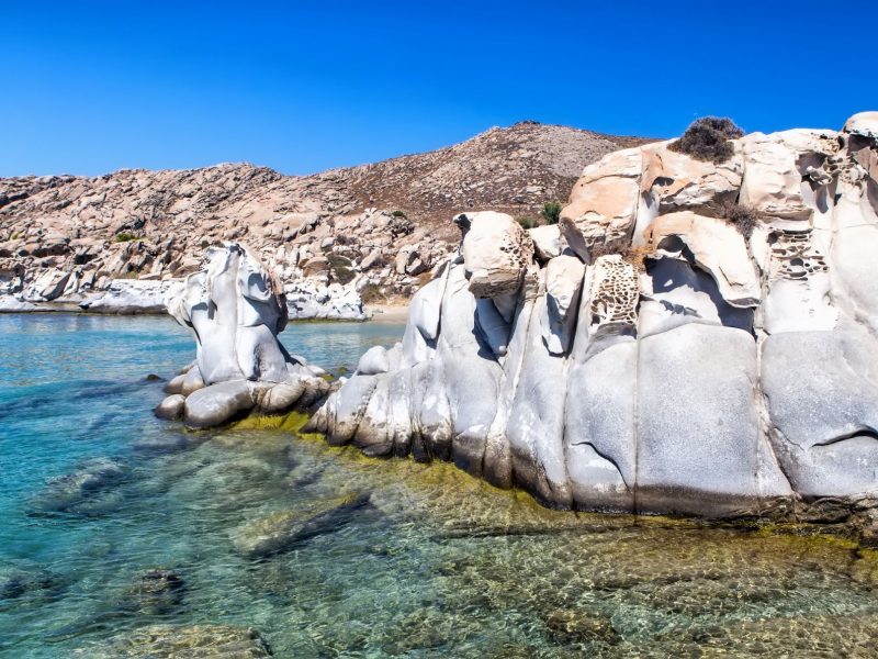 Climb the rock formations scattered throughout Kolymbithres Beach. Sculpted into smooth shapes by the sea and the wind over centuries, these formations separate the beach into small, intimate areas. Relax on a lounge chair on the white sand or swim among schools of fish through the still, clear water. A watersport shack offers kayaks, waterskis, and other equipment for hire. There are a few beach bars and taverns along the road leading to the beach, which is accessible by local bus, cars, and small fishing boats.